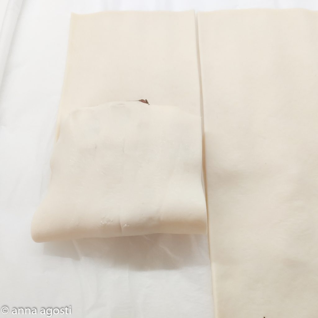 Messen Sie mit den Tomini ab und schneiden Sie den Blätterteig an der kürzeren Seite.