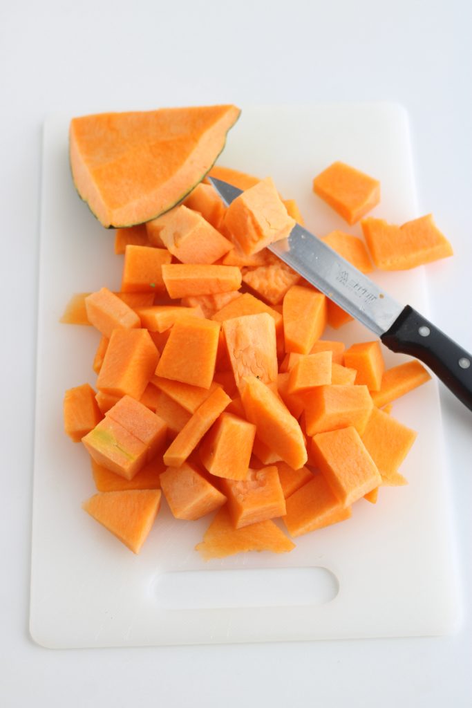 - 800 g Kürbis (ca. 500 g bereits gereinigtes Fruchtfleisch)