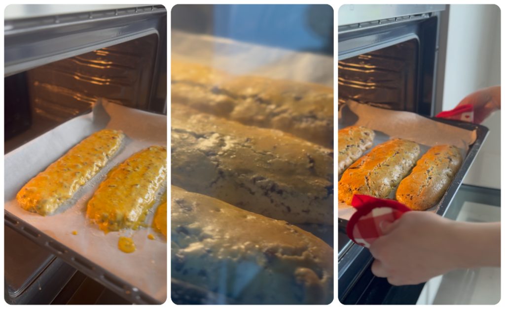 Legt alle Cantucci wieder aufs Backblech für die zweite Backphase, sie sollen ‚biscottieren‘.