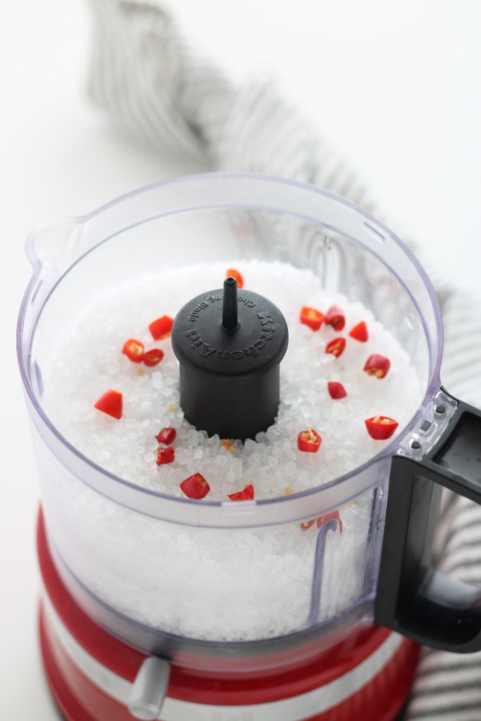Besorgen Sie sich nur zwei Zutaten: grobes Salz und frische scharfe Chilischoten.