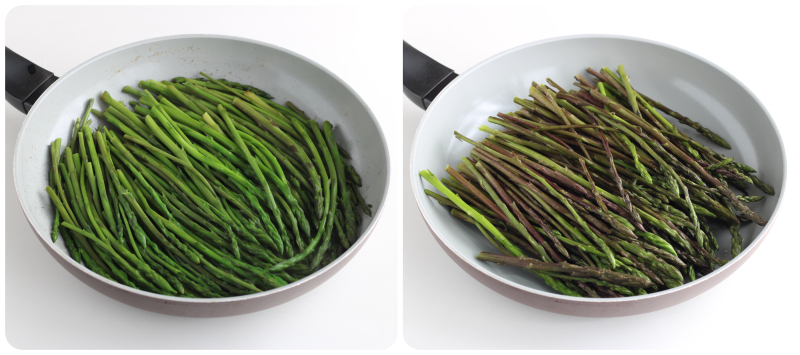 Legt die ganzen Spargelstangen in eine große Pfanne (oder besser noch in einen Spargeltopf) und gebt ein Glas Wasser dazu. Deckt die Pfanne mit einem Deckel ab und gart die Stangen bei mittlerer Hitze etwa 8–10 Minuten, bis sie zart sind.