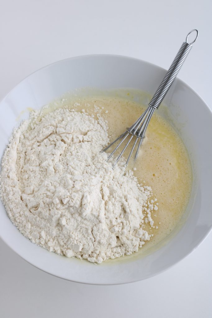 Achtung: Zum Abwiegen von Mehl, Zucker und Öl wird der Becher verwendet, der den Joghurt enthält. Übertragen Sie daher zuerst den Joghurt in ein Glas, dann waschen und trocknen Sie den Behälter sehr gut.