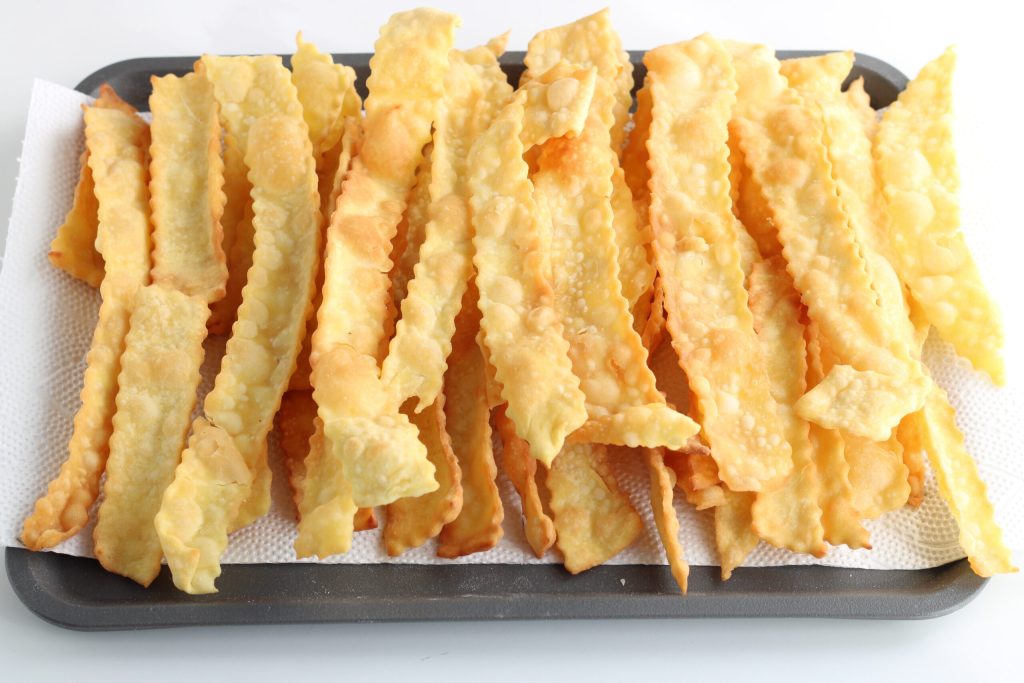Aufbewahrung: Die Chiacchiere sind köstlich, wenn sie frisch zubereitet sind, aber sie halten sich auch ein paar Tage in einer Papiertüte.