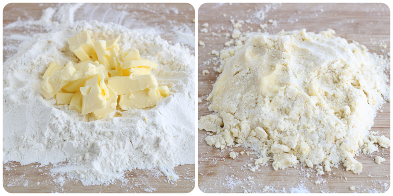 Gebt die in kleine Stücke geschnittene Butter bei Raumtemperatur hinzu und verknetet alles schnell, aber nicht zu lange.