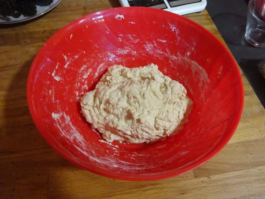 Dann mit der Frischhaltefolie abdecken und eine weitere Stunde gehen lassen.