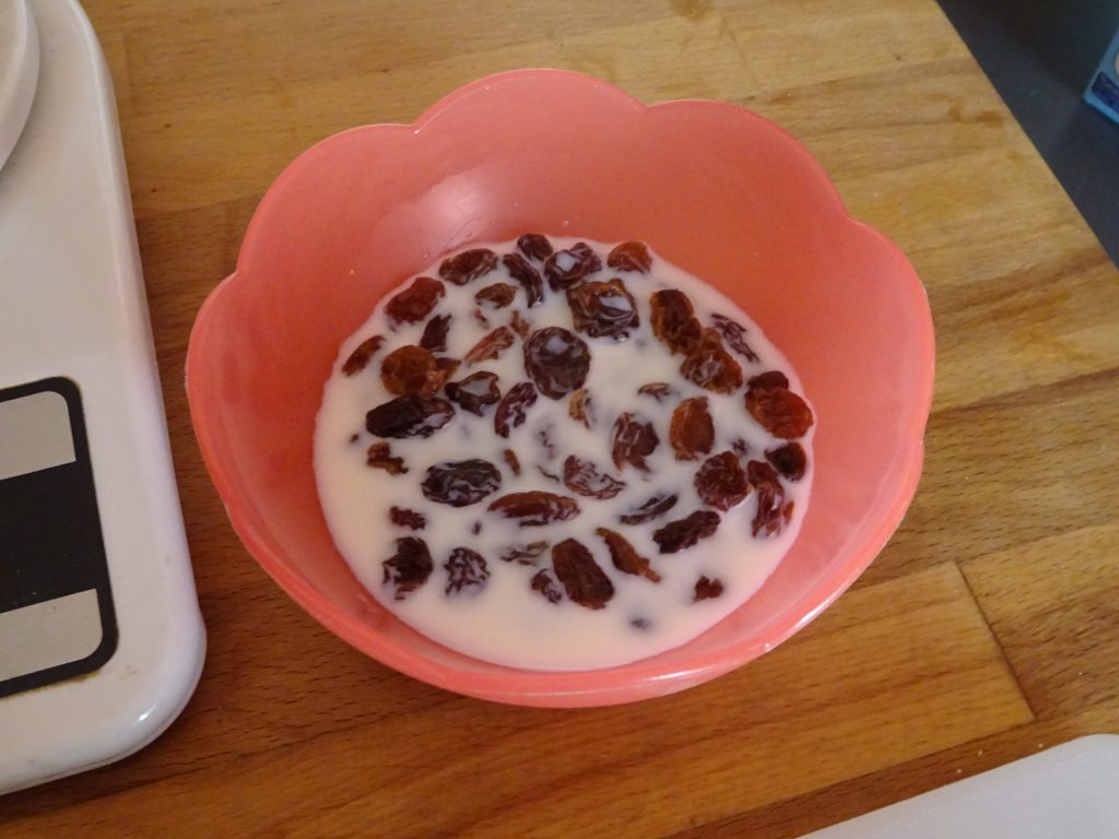 Jetzt die Rosinen in die Milch einweichen und beiseite stellen.