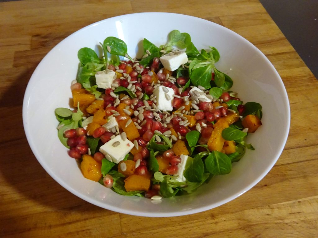Und voilà… Ihr Kürbis- und Granatapfel-Salat ist bereit, serviert zu werden.