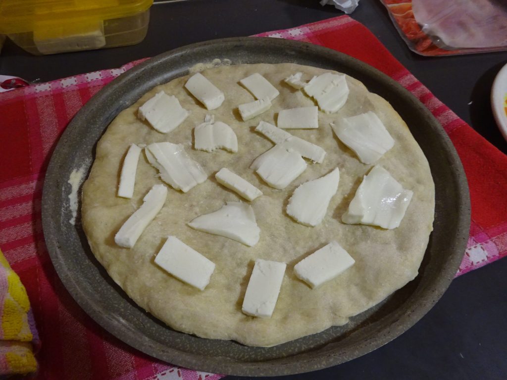 Pizza Feta und Feigen, eine super leckere und köstliche Pizza. Zubereitet mit einem klassischen Boden, belegt mit Mozzarella und Feigen, nach dem Backen garniert mit griechischem Feta und Honig.