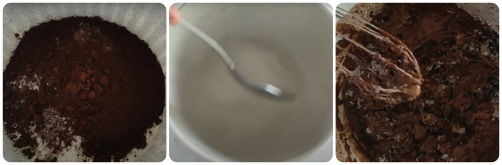 • Mischen Sie in einer Schüssel das Weizenmehl Type 00 mit dem Kakaopulver und rühren Sie es mit einem Handrührbesen um.