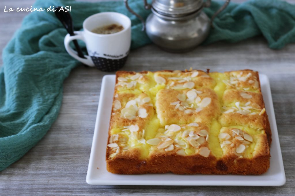 Ich habe ihn mit einer quadratischen Form gebacken, aber natürlich können wir auch eine runde Form verwenden und eine konzentrische Spirale aus Vanillecreme auf der Oberfläche zeichnen, um denselben Effekt zu erzielen!