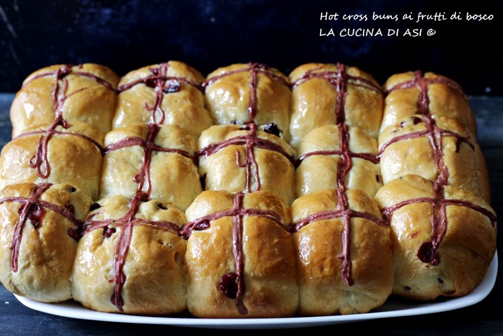 Die heißen Cross Buns mit Waldfrüchten sind superweich und ich empfehle sie Ihnen sehr!