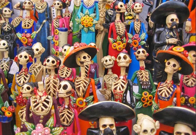 Das Totenfest in Mexiko ist eine farbenfrohe Feier mit reich verzierten Altären und Masken, Bräuchen und Traditionen, die von den Azteken überliefert wurden und seit 2003 zum Weltkulturerbe gehören. Es ist ein Tag, der das Leben feiert, an dem die Mexikaner (aber auch andere lateinamerikanische Länder feiern) mit Ironie und Spaß als calacas (bunte Skelette) verkleidet auf die Straßen ziehen und alle in ihren Weg hineinziehen.