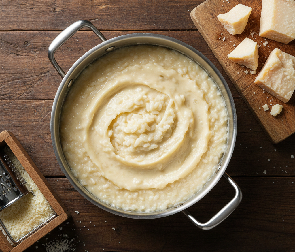 Wie man cremiges Parmesan-Risotto „all’onda“ ohne Sahne zubereitet