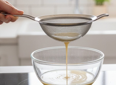 Um sicherzugehen, dass keine Klümpchen bleiben, nimm eine weitere Schüssel und siebe den gesamten Teig durch ein feines Sieb. Dieser Schritt ist entscheidend für ein professionelles Ergebnis.