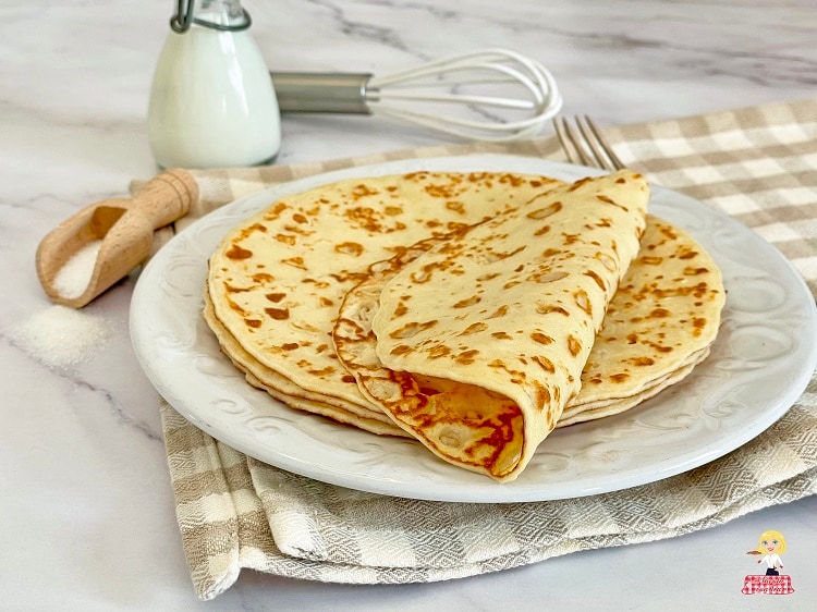 Im heutigen Rezept habe ich Kuhmilch verwendet, aber bei Laktoseintoleranz oder veganen Gästen kann sie durch ein pflanzliches Getränk wie Soja oder Mandel ersetzt werden (ungesüßt, wenn herzhafte Crepes gewünscht sind, sonst auch gesüßt).