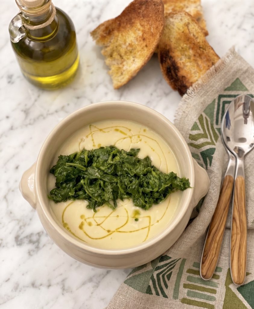 Für ein authentisches Erlebnis serviere das Gericht mit einer gut getoasteten Scheibe Vollkornbrot. Das Püree sollte die „Unterlage“ für die Zichorie bilden und das Ganze großzügig mit hochwertigem natives Olivenöl extra vergossen werden.