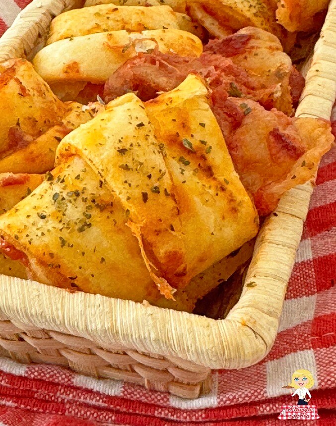 Sie sind in wenigen Minuten zubereitet, können auch im Voraus gemacht und dann zum letzten Moment gebacken werden und sind extrem vielseitig. Tatsächlich können Sie im Inneren der knusprigen Blätterteighülle unzählige Zutaten einschließen, auch die, die Sie bereits zur Verfügung haben, um viele verlockende Häppchen zu kreieren, die immer anders sind.