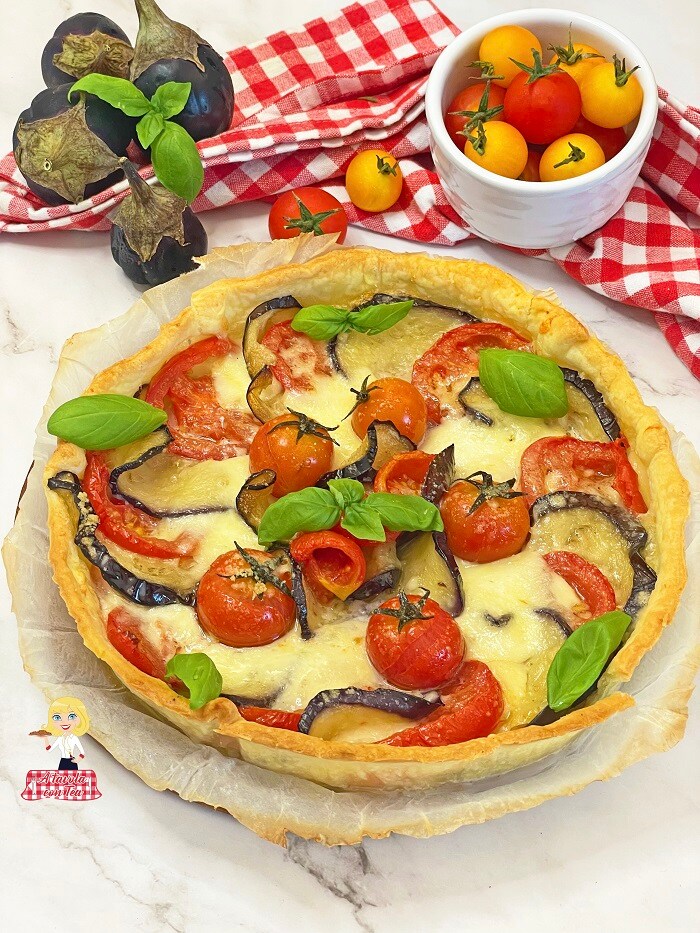 Die, die wir heute zusammen kochen werden, ist die Herzhafte Auberginen-Torte, inspiriert von der Auberginen-Parmigiana, einem großen Klassiker der italienischen Küche, serviert in diesem Fall in einem knusprigen Blätterteig.