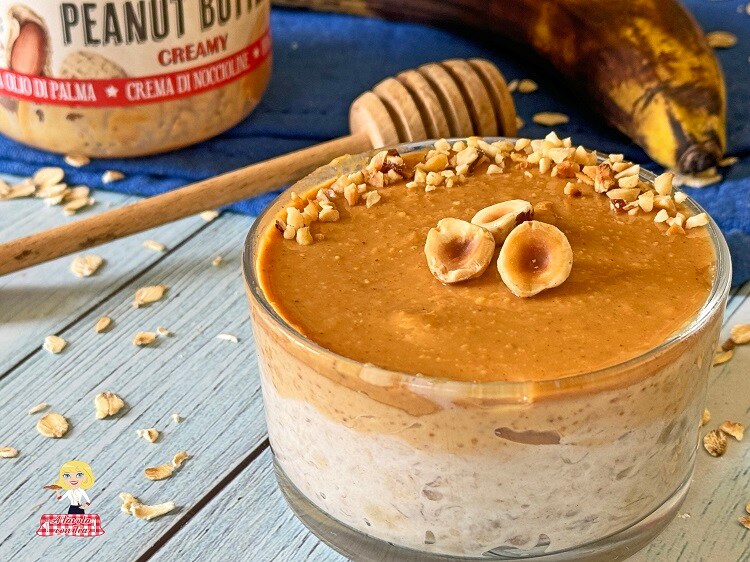 Heute präsentiere ich euch dieses Rezept für ein Frühstück auf Basis von Haferflocken, Mandelmilch (oder Kuhmilch) und griechischem Joghurt, gesüßt mit Honig und noch köstlicher gemacht durch eine Garnierung aus Erdnussbutter. Eine Art Porridge, die sich in kürzester Zeit zubereiten lässt, voller Energie und Geschmack.