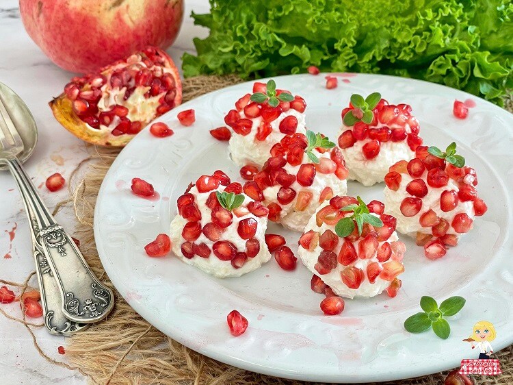Ich lade Sie dennoch ein, diese Version auszuprobieren, da die Samen des Granatapfels, mit ihrem süßen und saftigen Geschmack, die Käsemischung perfekt ergänzen und mit ihrer leuchtend roten Farbe dieses Fingerfood auch optisch äußerst ansprechend machen.