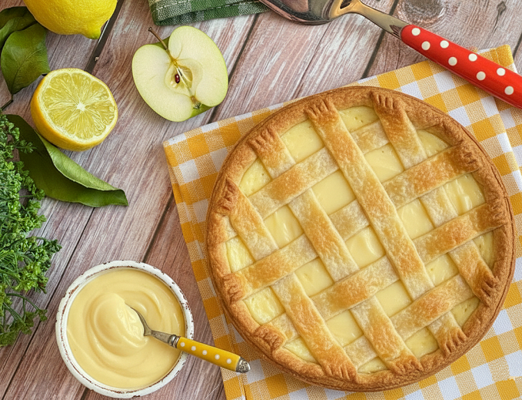 Die Tarte gehört zu den ältesten Gebäckformen der italienischen Tradition, mit Wurzeln bis in die Renaissance. Sie symbolisiert Gastfreundschaft und Schlichtheit; die Kombination aus Mürbeteig und Füllung hat zahlreiche regionale Variationen hervorgebracht. Die Pastetencreme (crema pasticcera) wurde in Frankreich perfektioniert, doch die ältere Variante, die „englische Creme“ (Crème anglaise), ist die leichtere Basis für unsere Version – ideal, um den Mürbeteig zu erweichen und einen feinen Kontrast zu den Äpfeln zu schaffen. Diese Tarte ist somit eine Hommage an die klassische europäische Patisserie, einfach interpretiert.