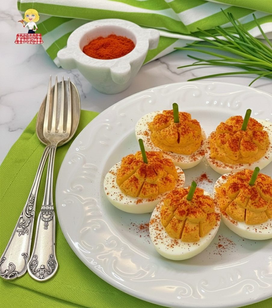 Die Teufelseier (Deviled Eggs) haben eine lange Geschichte, die bis ins antike Rom zurückreicht, wo Eier gekocht und mit scharfen Saucen und Gewürzen gewürzt wurden. Die moderne Version, bei der die Eigelbe zerdrückt und mit fettigen und sauren Zutaten (wie Mayonnaise und Senf) gemischt wurden, wurde im 19. Jahrhundert in Europa und den USA extrem populär, wo sie eine feste Größe bei Picknicks und Buffets waren. Der Begriff „Diavola“ (oder „Deviled“) bezieht sich auf die intensive und würzige Würzung. Die Umwandlung in „Mini-Kürbis“ ist eine moderne und kreative Neuinterpretation, typisch für Food-Blogger, die den Paprika-Farbton nutzen, um Halloween zu Ehren zu kommen.