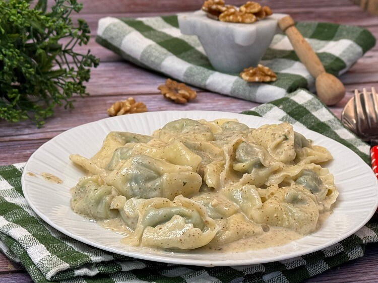 Eine der bekanntesten Soßen der ligurischen Küche, neben dem BASILIKUMPESTO, ist sicherlich die Walnussoße, die klassisch mit Pansotti oder Pansoti (gefüllte Pasta mit Kräutern und Ricotta) oder mit mageren Ravioli (gefüllt mit Spinat und Ricotta) serviert wird. Es handelt sich um eine sehr schmackhafte Soße, die aus frischen Walnüssen zubereitet wird, die im Mörser mit Öl und anderen Zutaten zerstoßen werden. Tatsächlich zeichnet sich die Zubereitung der Walnussoße, wie beim Pesto, durch die Arbeit im Marmormörser aus, obwohl natürlich heutzutage fast jeder sie mit der Küchenmaschine zubereitet.
