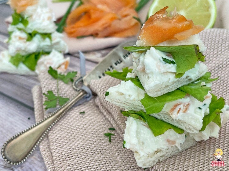 In diesem Rezept haben wir die Sandwiches mit Lachs-Mousse gefüllt, aber Sie können sie auch mit Mortadella-Mousse, Olivenpate, Salami und Mayonnaise, Genuesischem Basilikumpesto gemischt mit cremigem Käse oder Gänseleberpastete füllen.