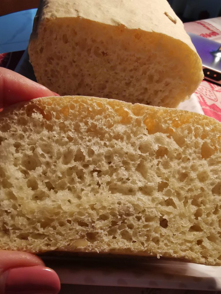 Das Brot mit Dinkelmehl habe ich in einer Kastenform gemacht, in einer klassischen Kastenform.