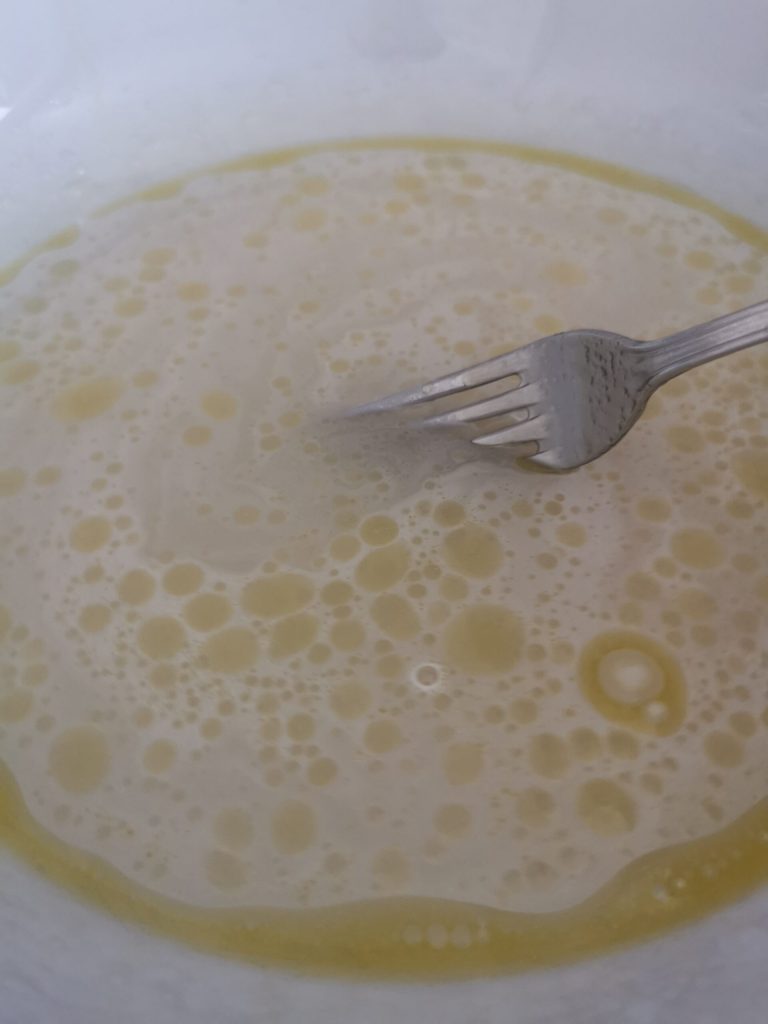 Mit einer Gabel diese Zutaten vermengen.