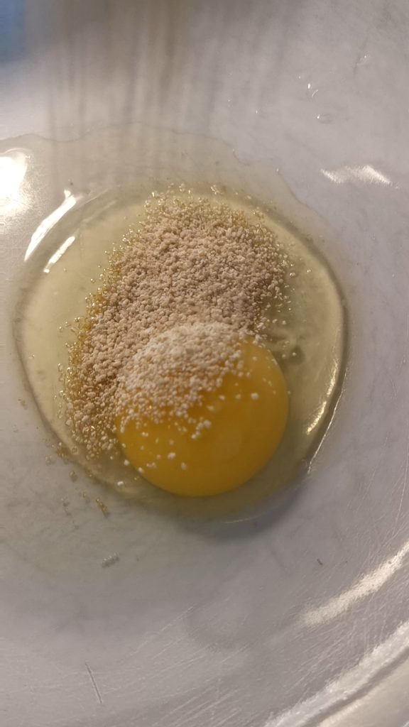 Es sind keine besonderen Werkzeuge erforderlich, nur ein Behälter zum Kneten, eine Gabel und eure Hände.