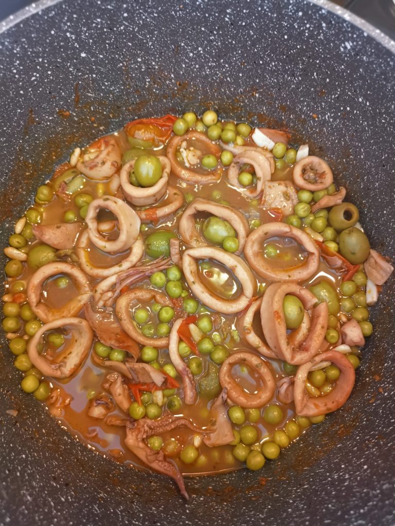 Sobald er fertig ist, geben wir die Tintenfischsauce darüber und was soll ich sagen… Genießt dieses wunderbare, geschmackvolle Gericht.