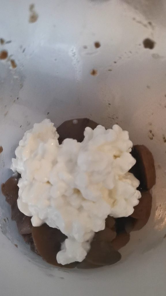 Gekochte Pilze, Hüttenkäse, einige Esslöffel Milch 2/3, je nach gewünschter Cremigkeit. Fügen Sie auch zwei Esslöffel Parmesan hinzu und beginnen Sie zu mixen, bis die gewünschte Konsistenz erreicht ist.