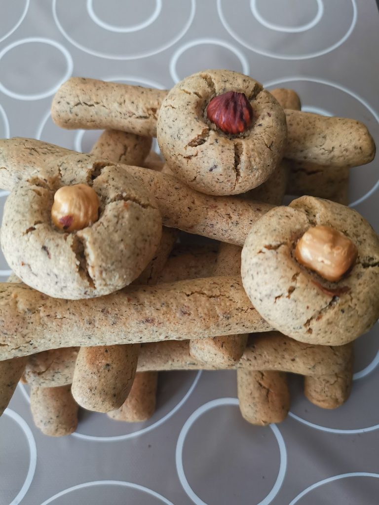 Die Haselnuss- und Buchweizenplätzchen sind köstliche Kekse, die ich in Form von Stäbchen und Kugeln gemacht habe.