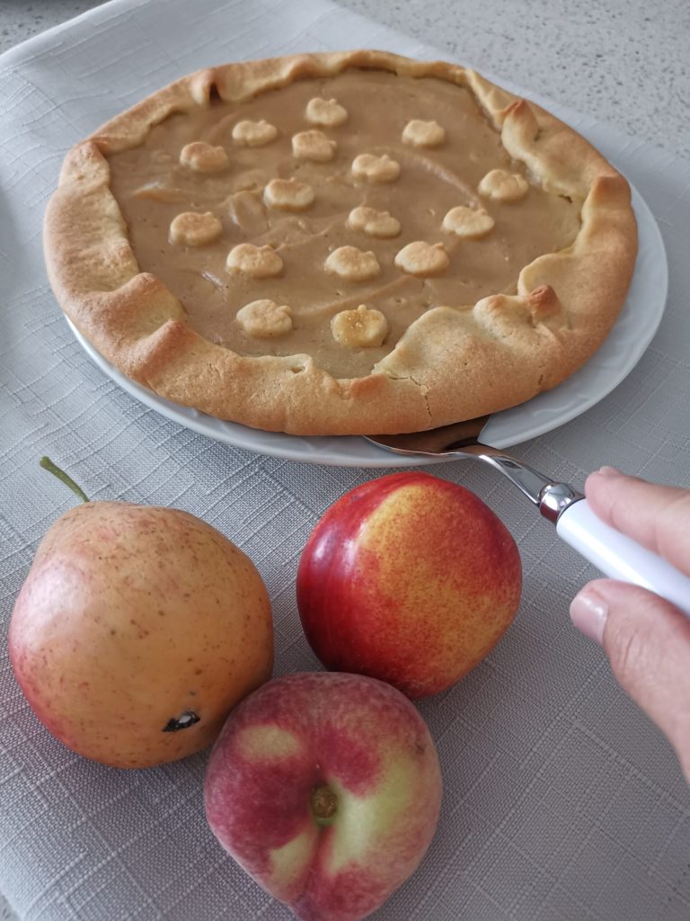 Heute habe ich den Joghurt-Mürbeteigkuchen zubereitet, um ihn dann mit einem Apfel-Bananen-Fruchtpüree zu füllen.