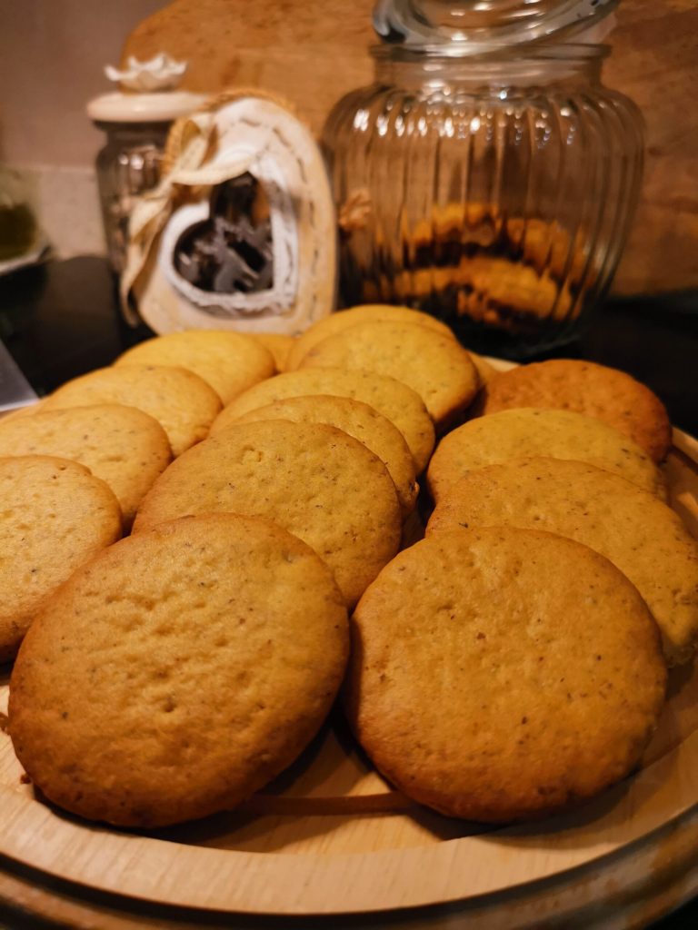 Die Kurkuma- und Haselnusskekse sind Mürbeteigkekse mit wenig Fett, knusprig und leicht. Sie können sie zu jeder Tageszeit genießen.