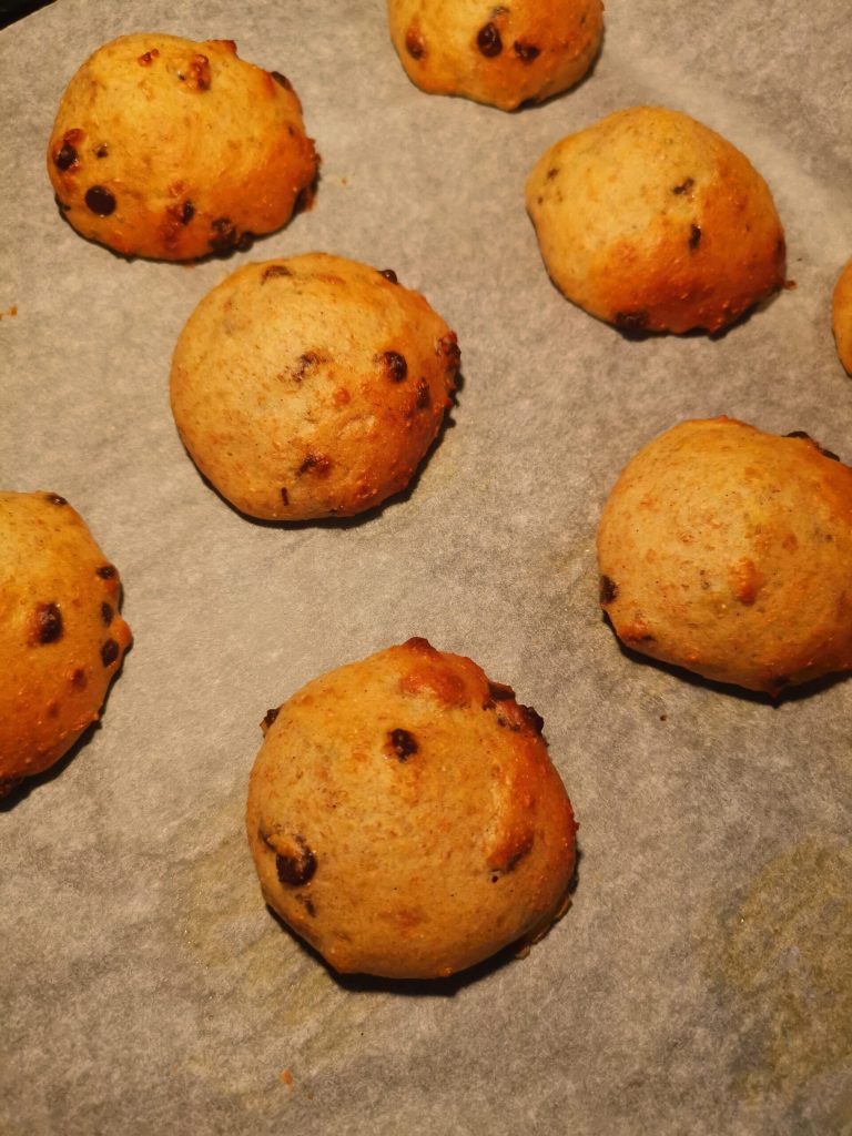 Die Kekse verteilen und dann bei 180 Grad Umluft, vorgeheizt, für ca. 15 Minuten backen. Die Kekse werden, sobald sie fertig sind, aufgehen und schön goldbraun sein.