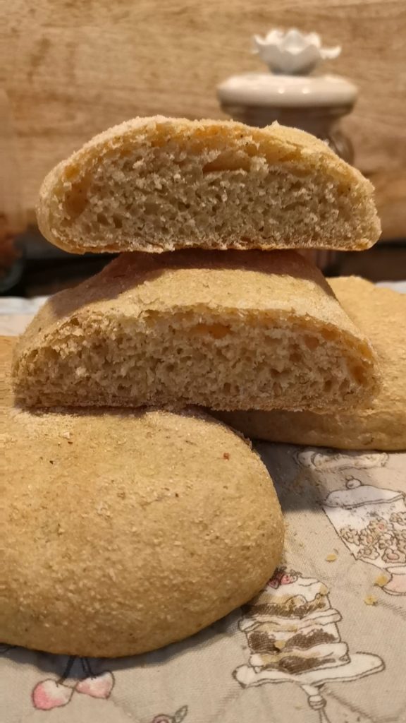 Denken Sie daran, dass die Konsistenz weich und flaumig sein wird, aber aufgrund der Verwendung von Maismehl wird es etwas mehr krümeln als das klassische Brot. Besonders nach 2/3 Tagen nach der Zubereitung.