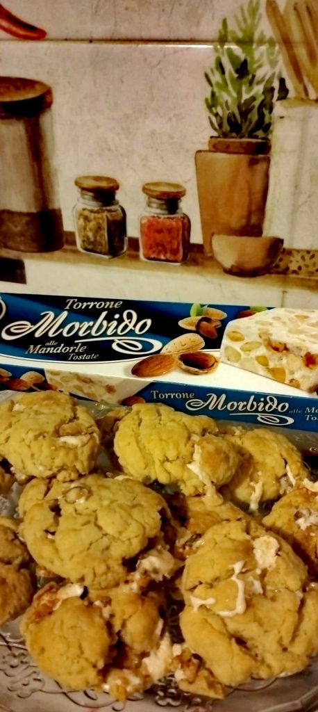 Einmal zerkleinert, fügt den Nougat zur vorherigen Mischung hinzu, rührt gut um und beginnt, die gesiebten Pulver hinzuzufügen. Das Mehl, die Stärke und das Backpulver.