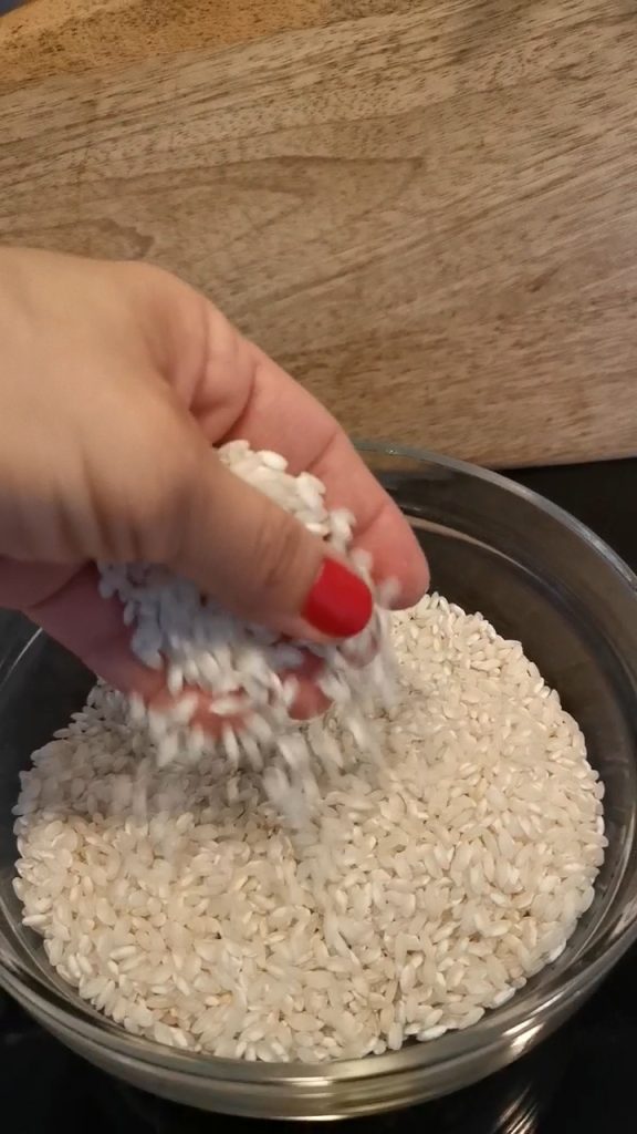 Also habe ich, nach dem Prinzip des gesunden Essens, mit einfachem Reis begonnen, den ich mit einem Hauch Farbe verfeinert habe. Kommt mit, ich zeige euch das Vorgehen.