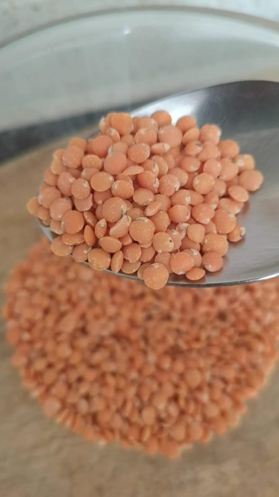 Wiege und wasche zunächst die roten geschälten Linsen gründlich.