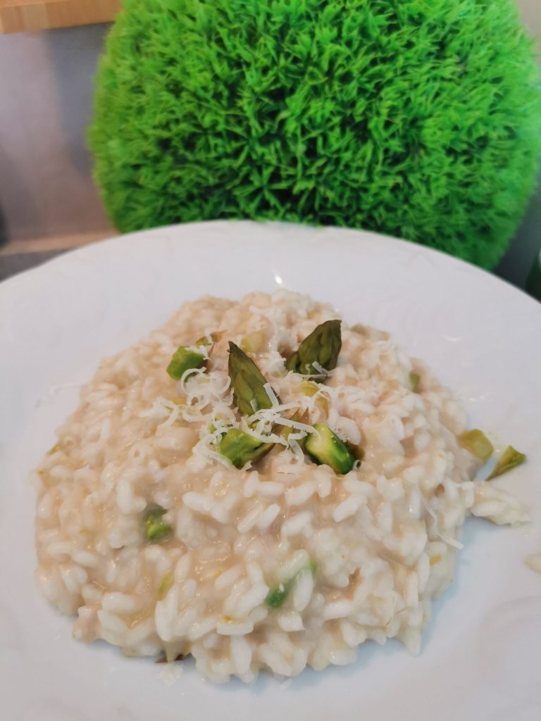 Das Spargelrisotto ist ein einfaches Gericht, zart, duftend und cremig. Es bringt die ersten grünen Aromen der Saison mühelos und elegant auf den Tisch.
