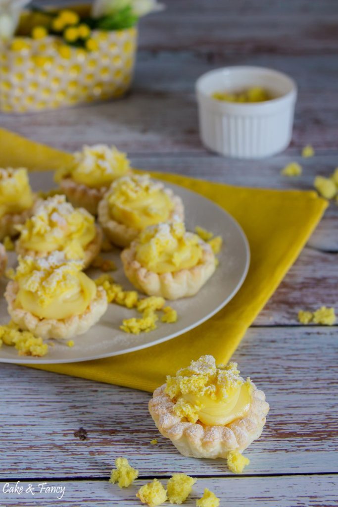 Sobald sie fertig sind, herausnehmen und abkühlen lassen, in der Zwischenzeit die Konditorcreme vorbereiten hier, wie man sie macht. In jedes Blätterteigkörbchen etwas Biskuit geben und mit der Konditorcreme füllen, schließlich das Körbchen mit Biskuit dekorieren, um den Mimoseneffekt zu erzeugen. Vor dem Servieren mit Puderzucker bestreuen und guten Appetit!