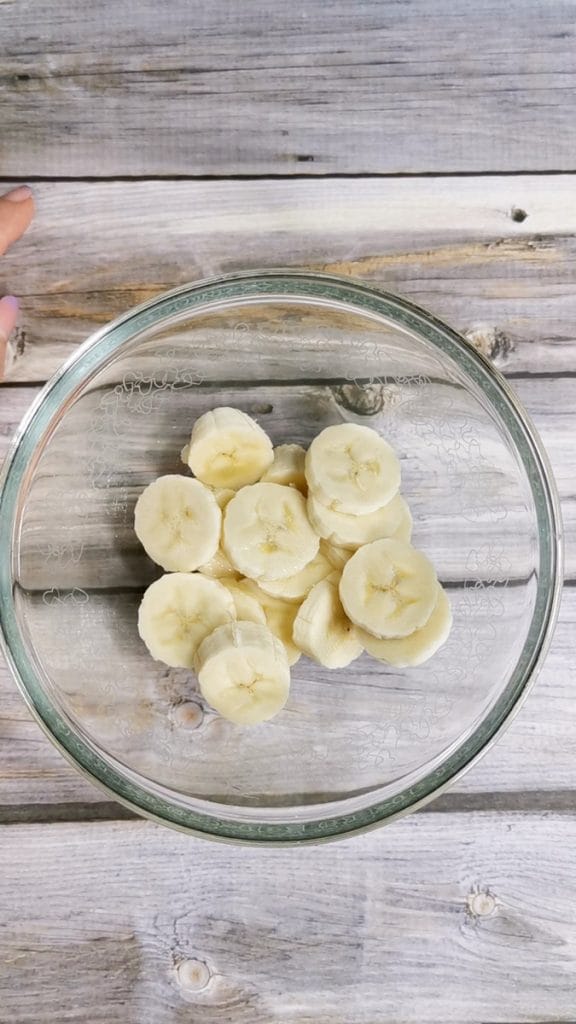 Schneiden Sie eine Banane in eine Schüssel und machen Sie ein Püree daraus, dann fügen Sie ein Ei hinzu und mischen Sie die Masse.