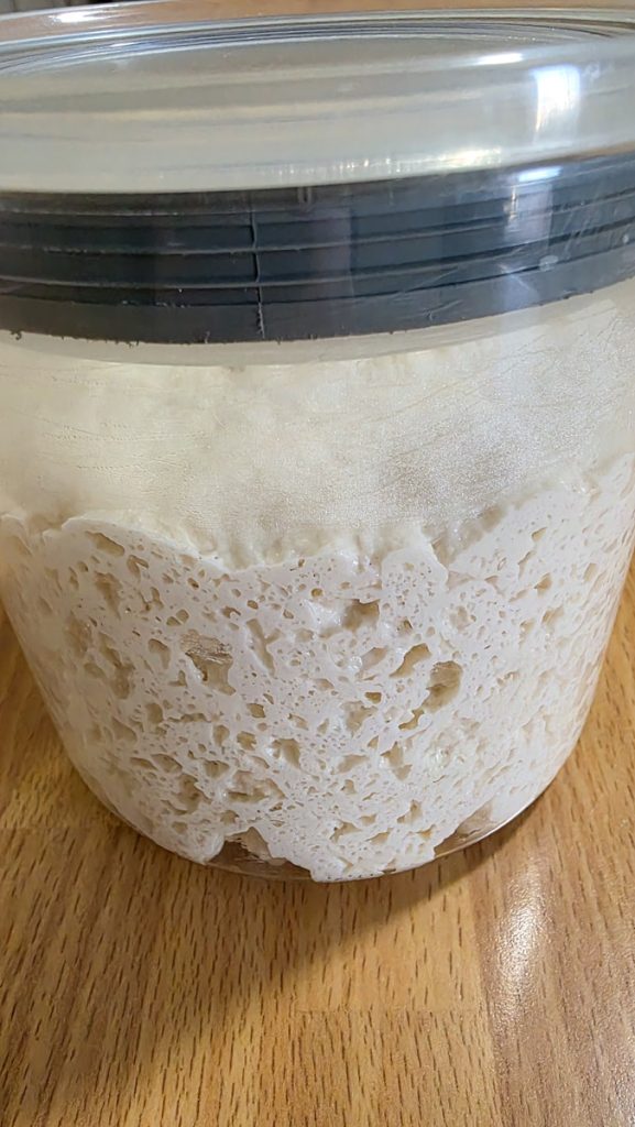 Wenn der Sauerteig im Kühlschrank aufbewahrt wird, sollte er vor dem Auffrischen mindestens 2 Stunden bei Raumtemperatur stehen, und nachdem er aufgefrischt wurde, sollte er immer 2/3 Stunden später wieder im Kühlschrank aufbewahrt werden.