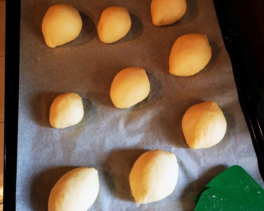 Legen Sie die Maritozzi auf ein Backblech mit Backpapier und lassen Sie sie im Ofen mit eingeschaltetem Licht oder bei einer Temperatur von etwa 28/30 Grad, bis sie fast verdoppelt sind.