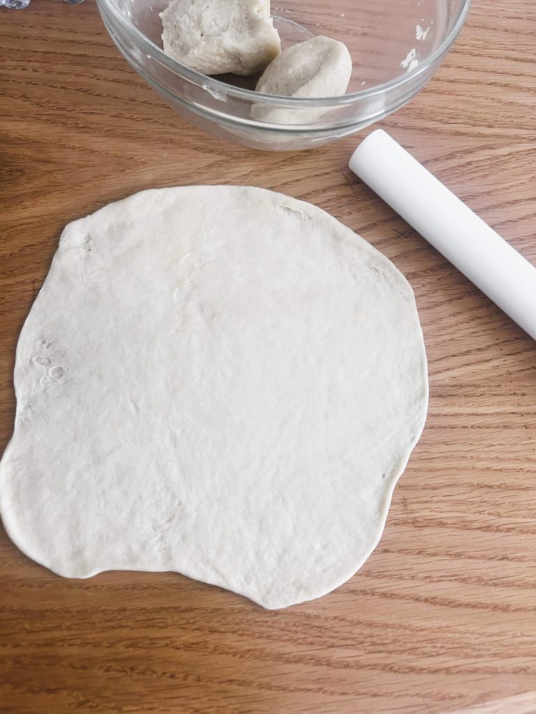 Mit einem Nudelholz jede Kugel zu dünnen Scheiben (2–3 mm) ausrollen.