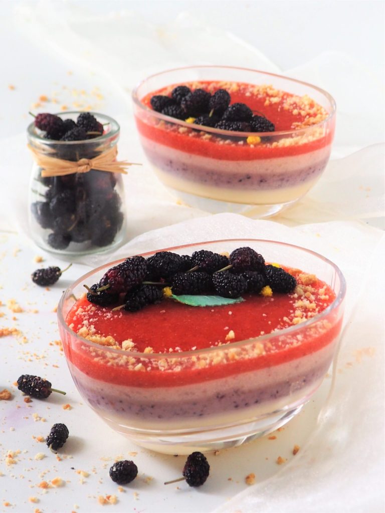 Die Bayerische Creme mit Maulbeeren und Erdbeeren ist ein frisches und einfach zuzubereitendes Dessert, ideal für warme Frühlingstage, wenn die Maulbeeren süß und reif sind, wirklich großartig, ich liebe sie. In Kombination mit Erdbeeren sind sie unwiderstehlich.