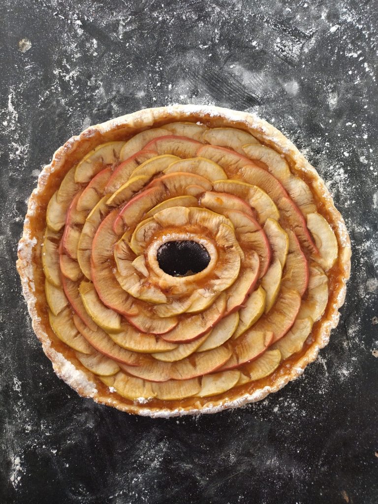 Beginnen Sie nun, die Äpfel kreisförmig von außen nach innen zu verteilen.