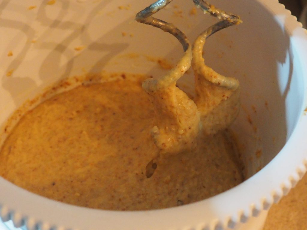 Jetzt die gemahlenen Mandeln, den Zucker, das Vanillin hinzufügen und weiter mixen.